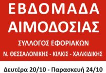 ΣΥΛΛΟΓΟΣ ΕΦΟΡΙΑΚΩΝ – ΕΒΔΟΜΑΔΑ ΑΙΜΟΔΟΣΙΑΣ: Από 20 έως 24 Οκτωβρίου στο ΑΧΕΠΑ