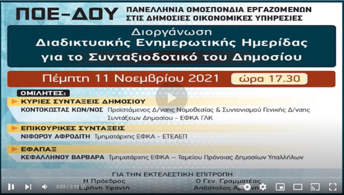 Δείτε όλη την ημερίδα για το συνταξιοδοτικό του Δημοσίου στον παρακάτω σύνδεσμο: