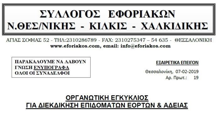 Κατεβάστε και εκτυπώστε την οργανωτική εγκύκλιο για τη διεκδίκηση των δώρων και του επιδόματος αδείαςεδώ