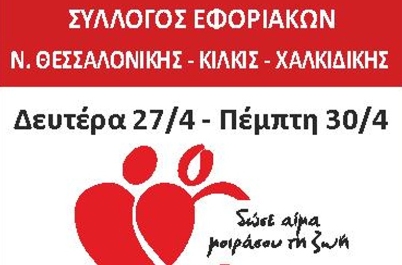 ΣΥΛΛΟΓΟΣ ΕΦΟΡΙΑΚΩΝ – ΕΒΔΟΜΑΔΑ ΑΙΜΟΔΟΣΙΑΣ 27.4 – 30.4.2026 ΣΤΟ ΑΧΕΠΑ